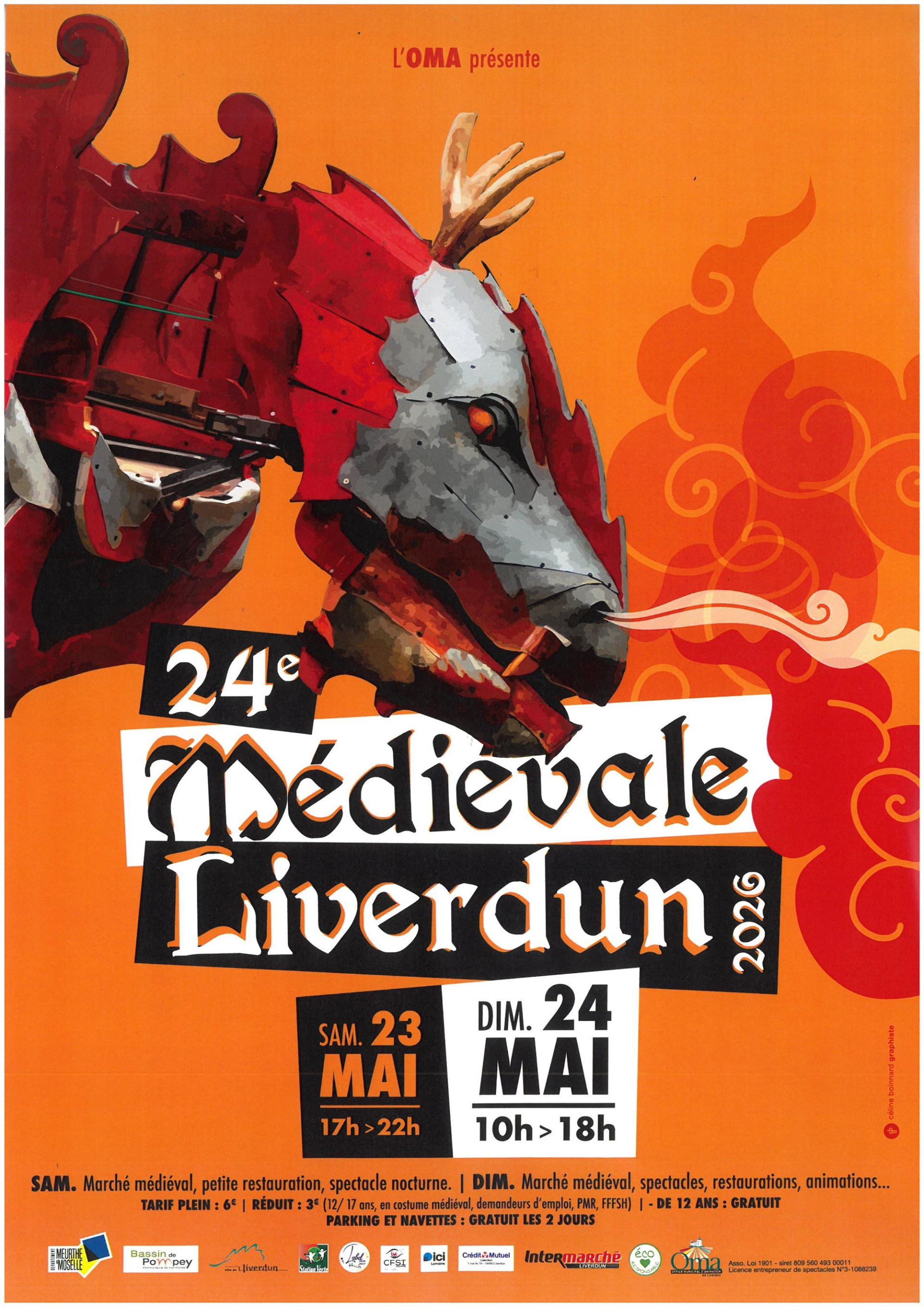 L'Office Municipal d'Animation (OMA) de Liverdun vous convie à la 24e édition de sa Fête Médiévale, dès le Samedi 23 Mai 2026 à partir de 17h et le Dimanche 24 Mai 2026 toute la journée. Pour vous faire vivre au rythme du Moyen Âge, la ville haute de Liverdun remonte le temps et se métamorphose après une année d'absence.