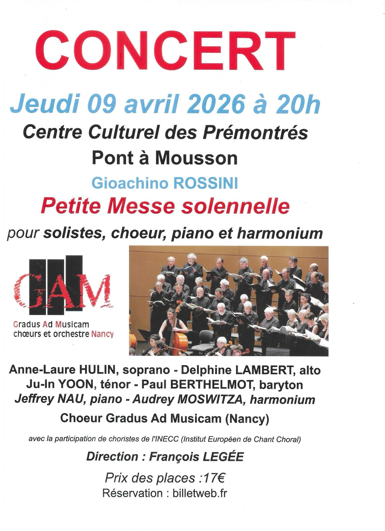 Concert au Centre Culturel de l'Abbaye des Prémontrés : Petite Messe solennelle pour solistes, chœur, piano et harmonium