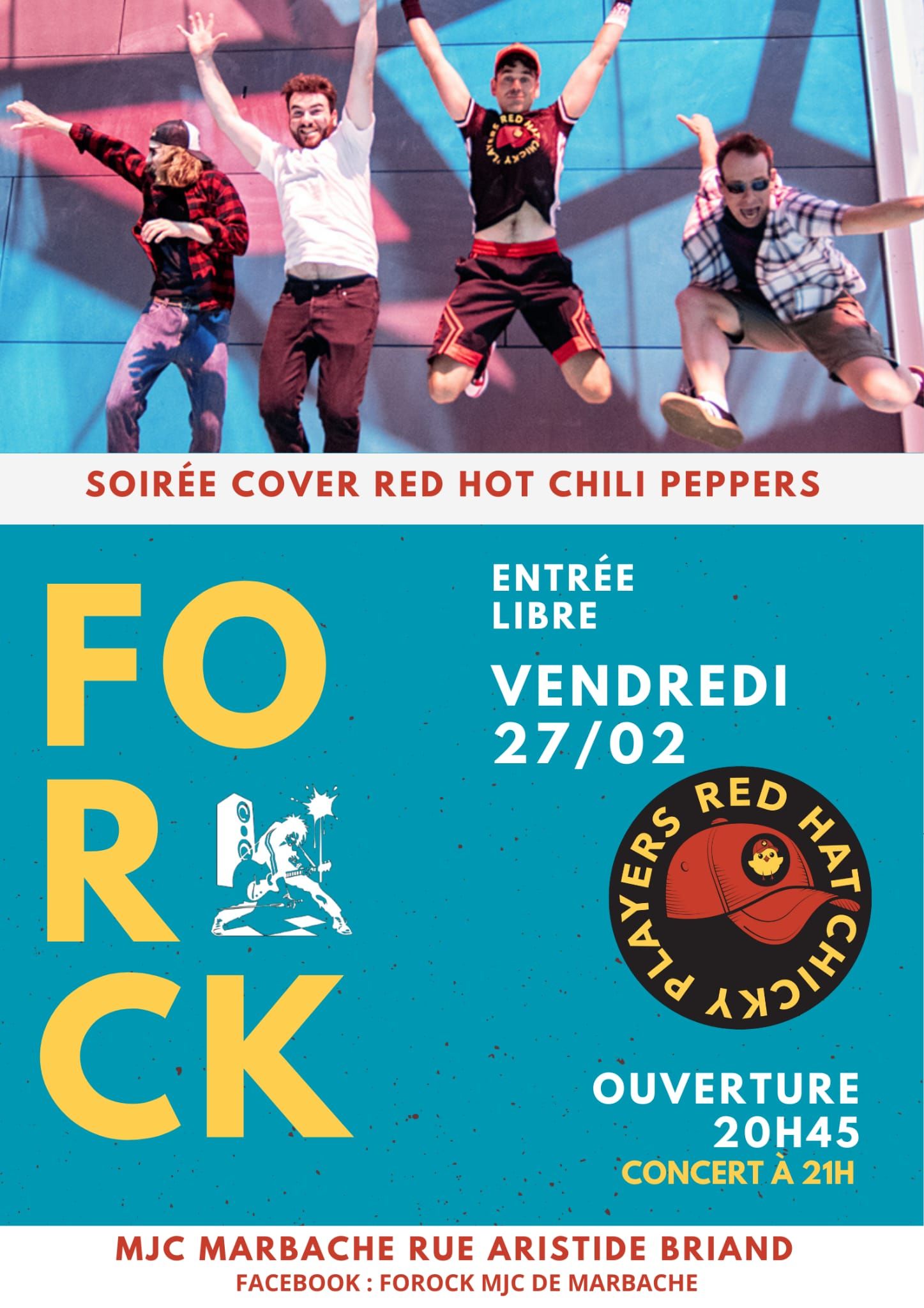 CONCERT FOROCK Soirée cover Red Hot Chili Peppers. Entrée libre. Ouverture 20h45. Début du concert à 21h.