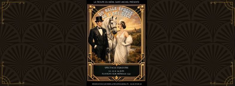 C’est ce passage que le spectacle raconte à travers une série de tableaux équestres, chorégraphiques et théâtralisés soulignant l’effervescence artistique, culturelle, économique et industrielle de l’époque. « La belle époque de l’Art déco » a été créé dans le cadre du bicentenaire du Salon des Arts décoratifs et industriels moderne à Paris qui marqua l’apogée de l’Art déco.