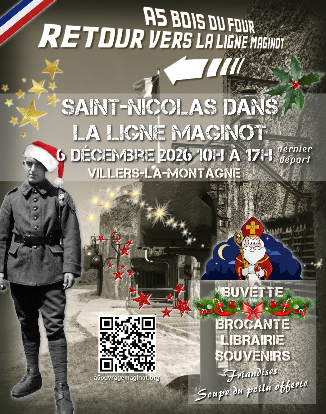 Brocante militaria, librairie, souvenirs et buvette.