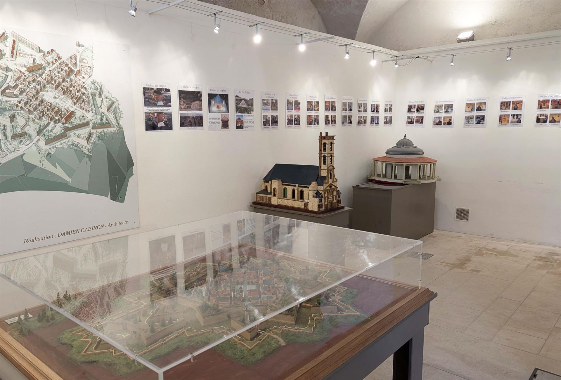 Explications des maquettes des fortifications de Vauban, du Vieux Château, de l’église Saint-Dagobert et de la Rotonde du parc des Récollets.