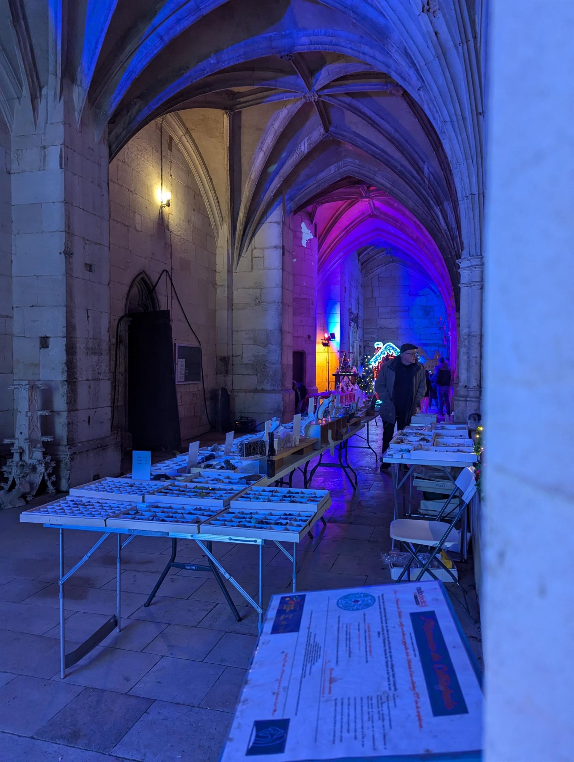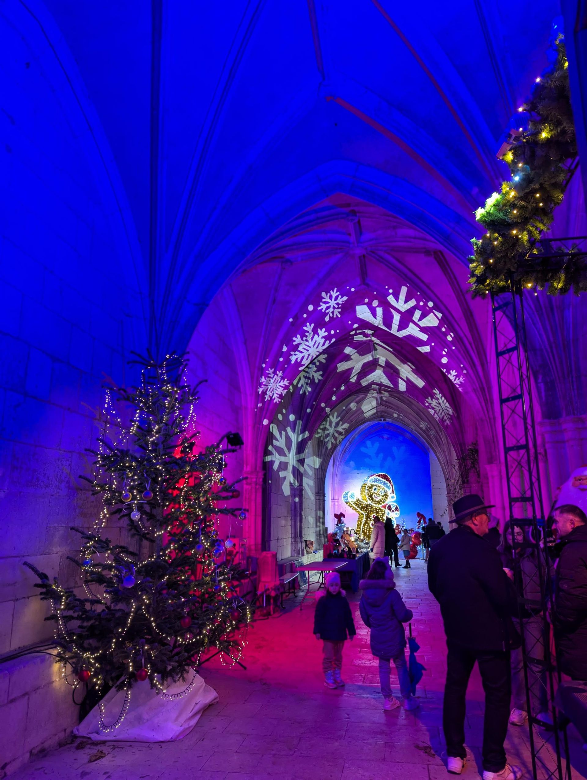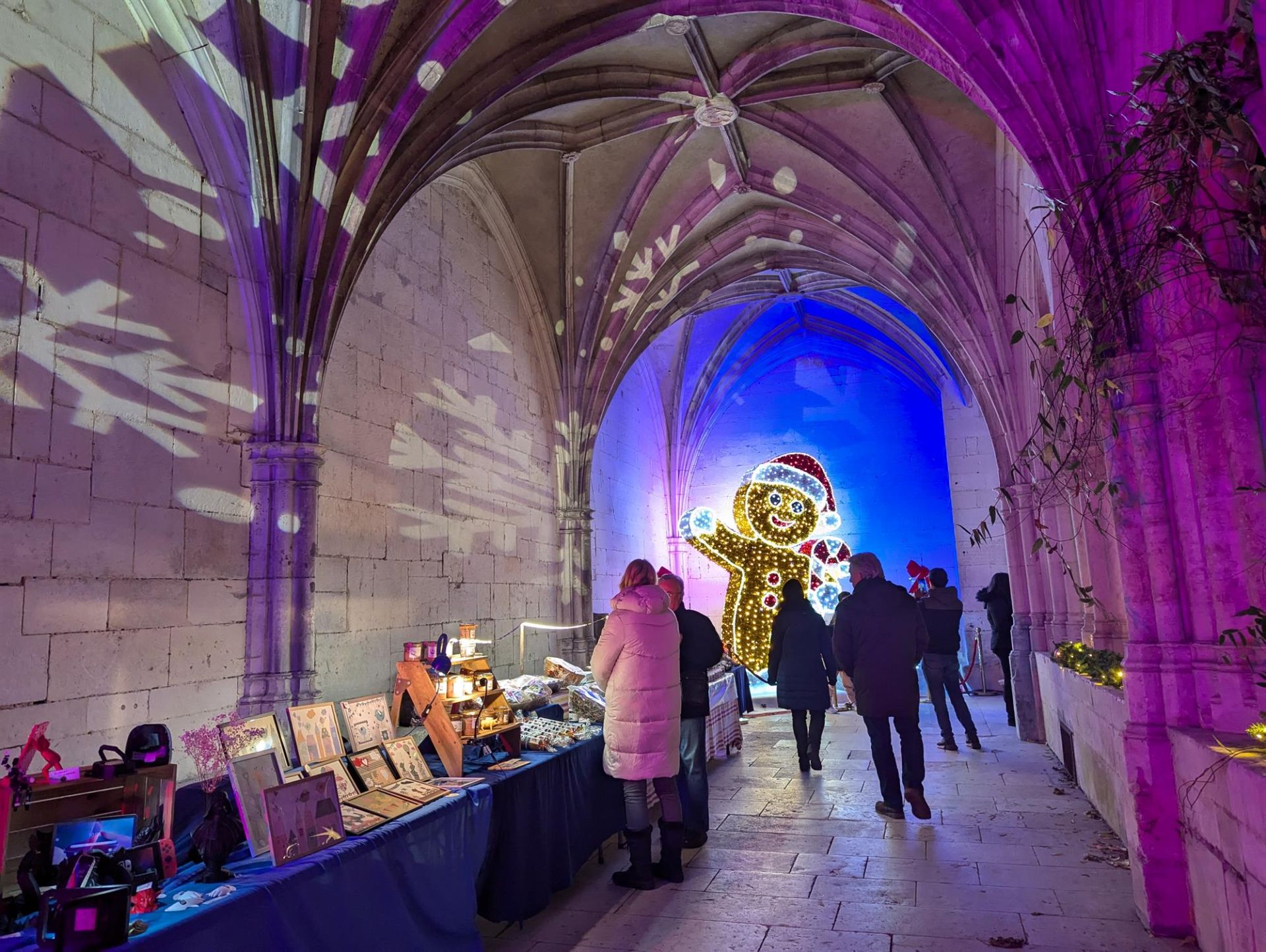 Sous les arches illuminées par les décorations de Noël, le cloître de la collégiale Saint-Gengoult accueille le marché des créateurs et producteurs locaux, les week-ends avant Noël.