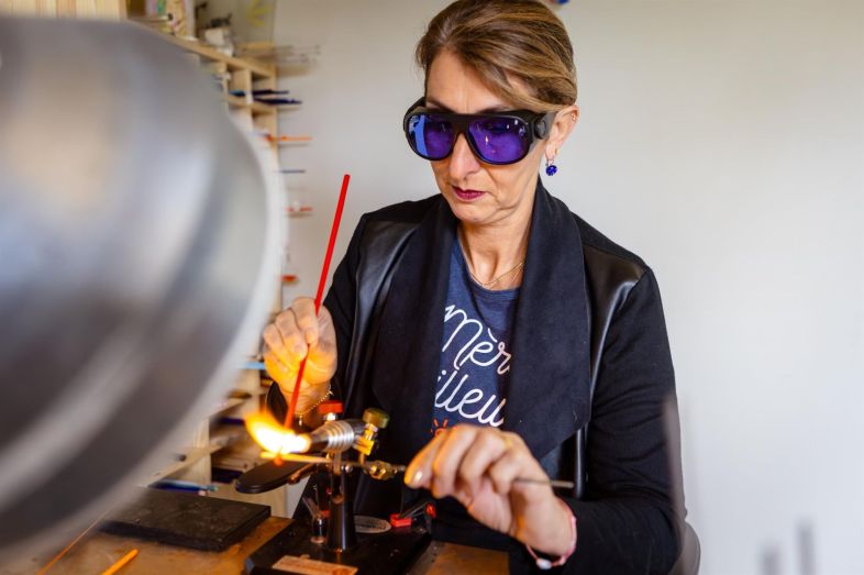 Bijoux en verre, perles façonnées à la flamme et créations inspirées du patrimoine lorrain - mirabelles, chardons ou bergamotes - prennent forme sous les yeux des visiteurs.