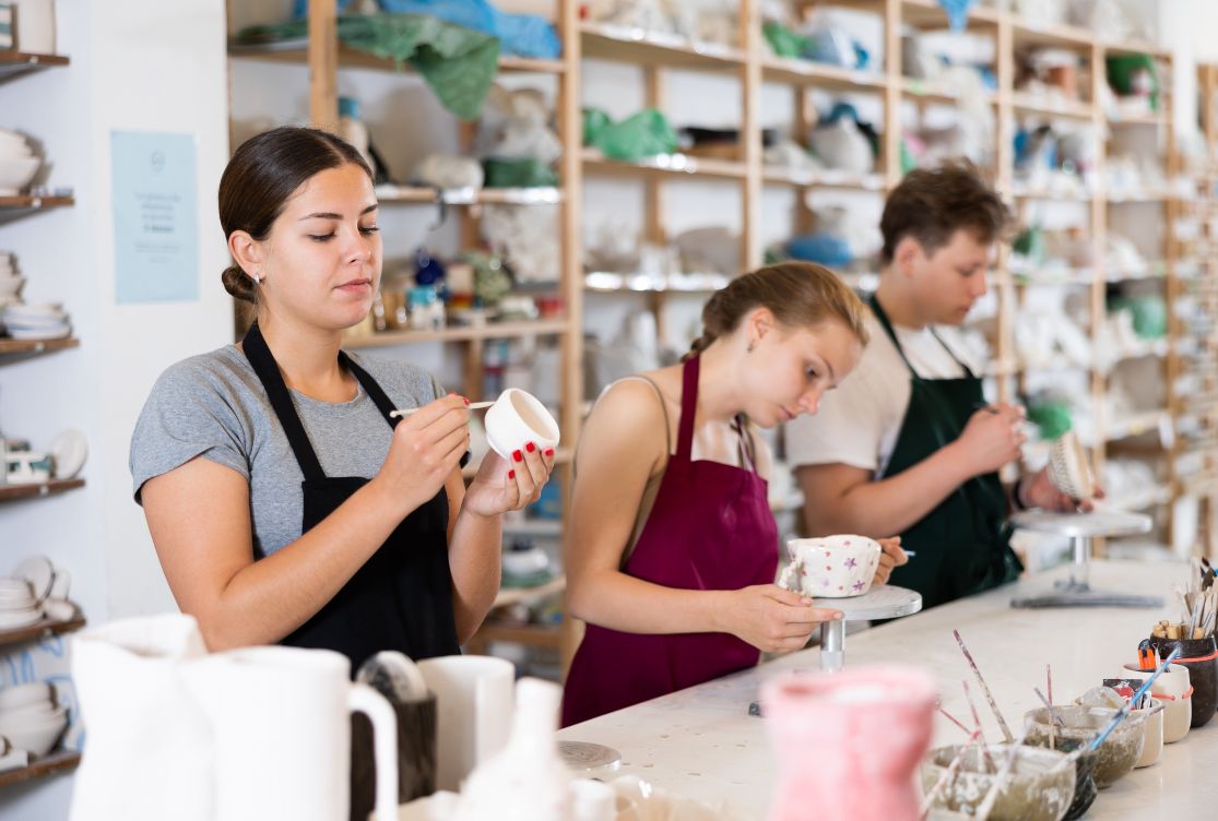 Installé dans un cadre dédié aux métiers d'art, cet atelier invite chacun à personnaliser une pièce en céramique déjà façonnée (tasse, bol, assiette ...), à l'aide de peintures et d'engobes adaptés. Accessible à tous, débutants comme initiés, il ne nécessite aucune expérience préalable.