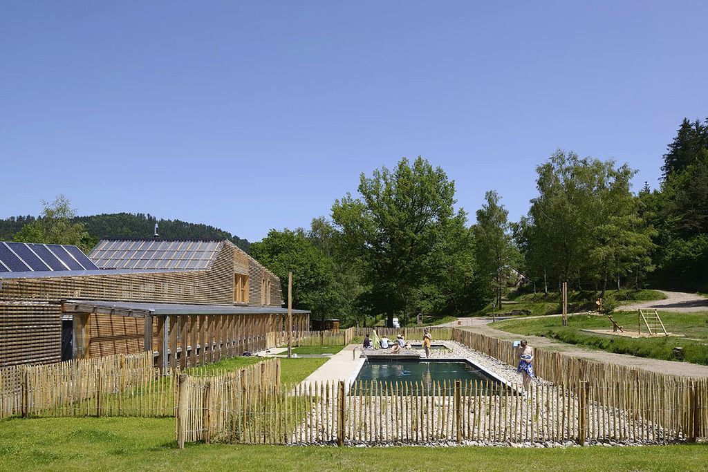 Camping écologique en bordure de forêt, au coeur du Parc naturel régional des Ballons des Vosges. Terrasses ombragées. Site de 5 hectares, exempt de véhicules, proche du centre bourg de Vagney.