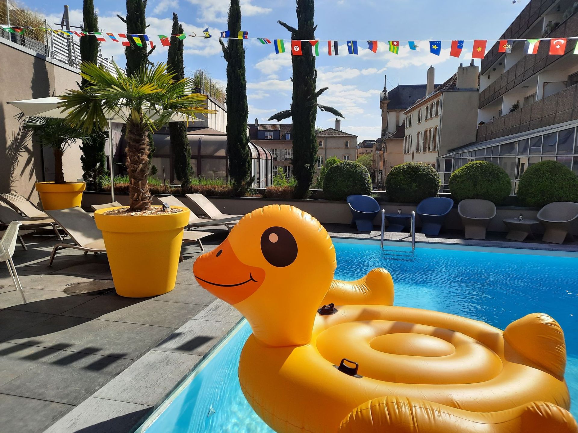 Situé en plein centre-ville, notre hôtel 4 étoiles propose 120 chambres spacieuses et climatisées, une salle de fitness, une piscine extérieure chauffée en été, et une terrasse élégante pour des moments de détente après une journée de travail ou un repas au bord de l’eau.