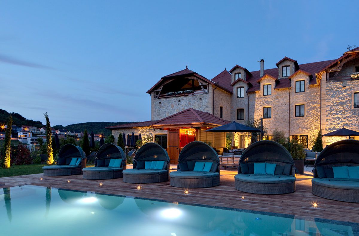 “Erigé au milieu des sept collines de Montenach, au cœur du Pays des Trois Frontières, le Domaine de la Klauss vous transportera hors du temps dans un univers de bien-être.”
