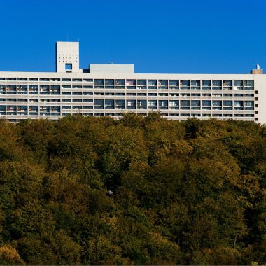 Longue de 110 mètres, large de 19 et haute de 56, à sa création en 1959, La Cité Radieuse Le Corbusier regroupait près de 340 appartements sur 17 étages, pour une population d’environ 1 000 habitants. Après Marseille et Nantes, l’invention de Le Corbusier est révolutionnaire. Son concept : rassembler sur un seul immeuble des services et des logements, où le rez-de-chaussée est ouvert sur de vastes espaces verts. L’immeuble est inscrit au titre des Monuments historiques en 1993.