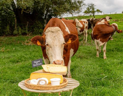 Fromages au lait cru de vache : tomme du Saintois nature et aromatisée, Marmouset, P'ti Régnou, fromages frais nature et aromatisés, fromage blanc. Œufs, crème, charcuterie. Sur commande : bœuf et porc