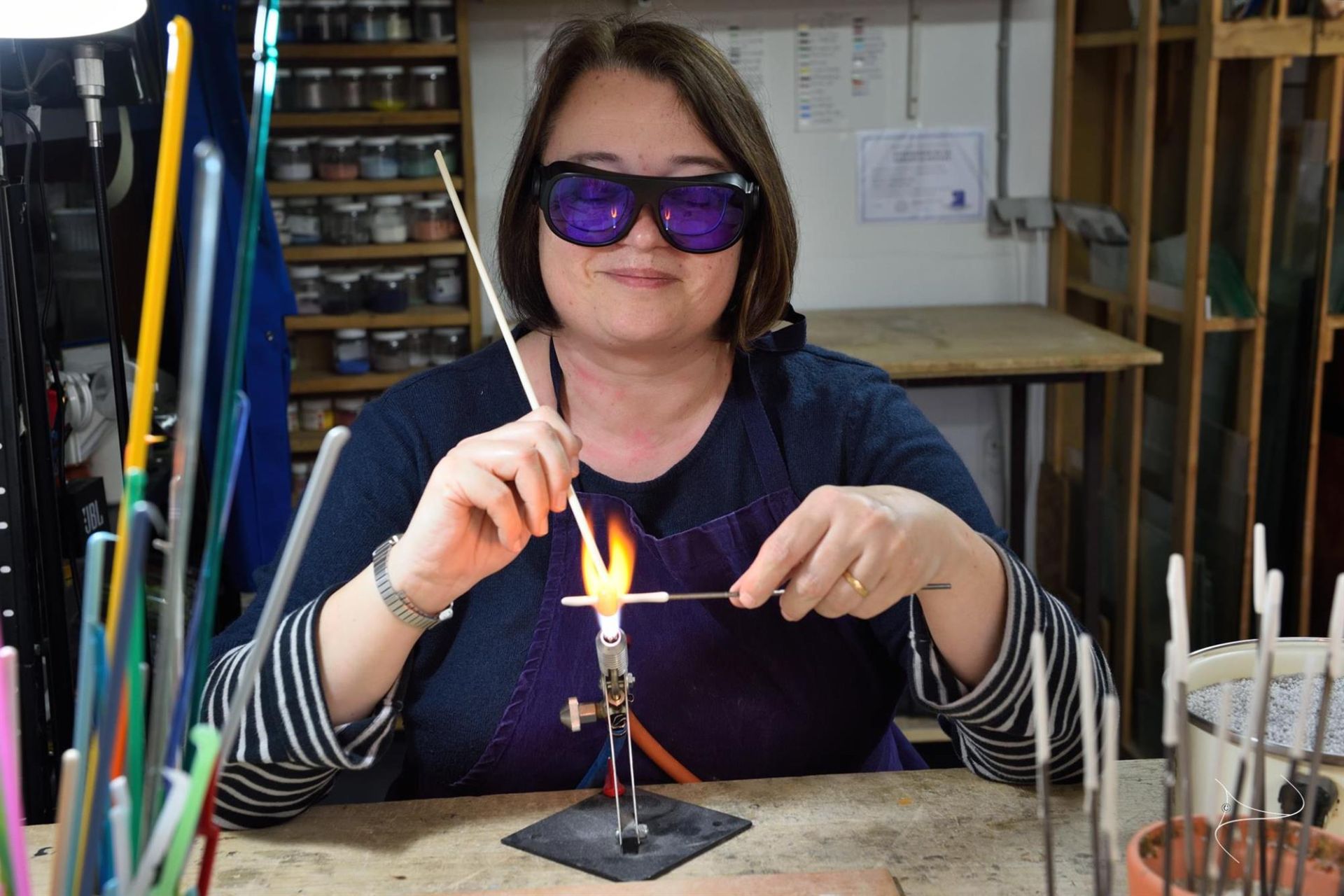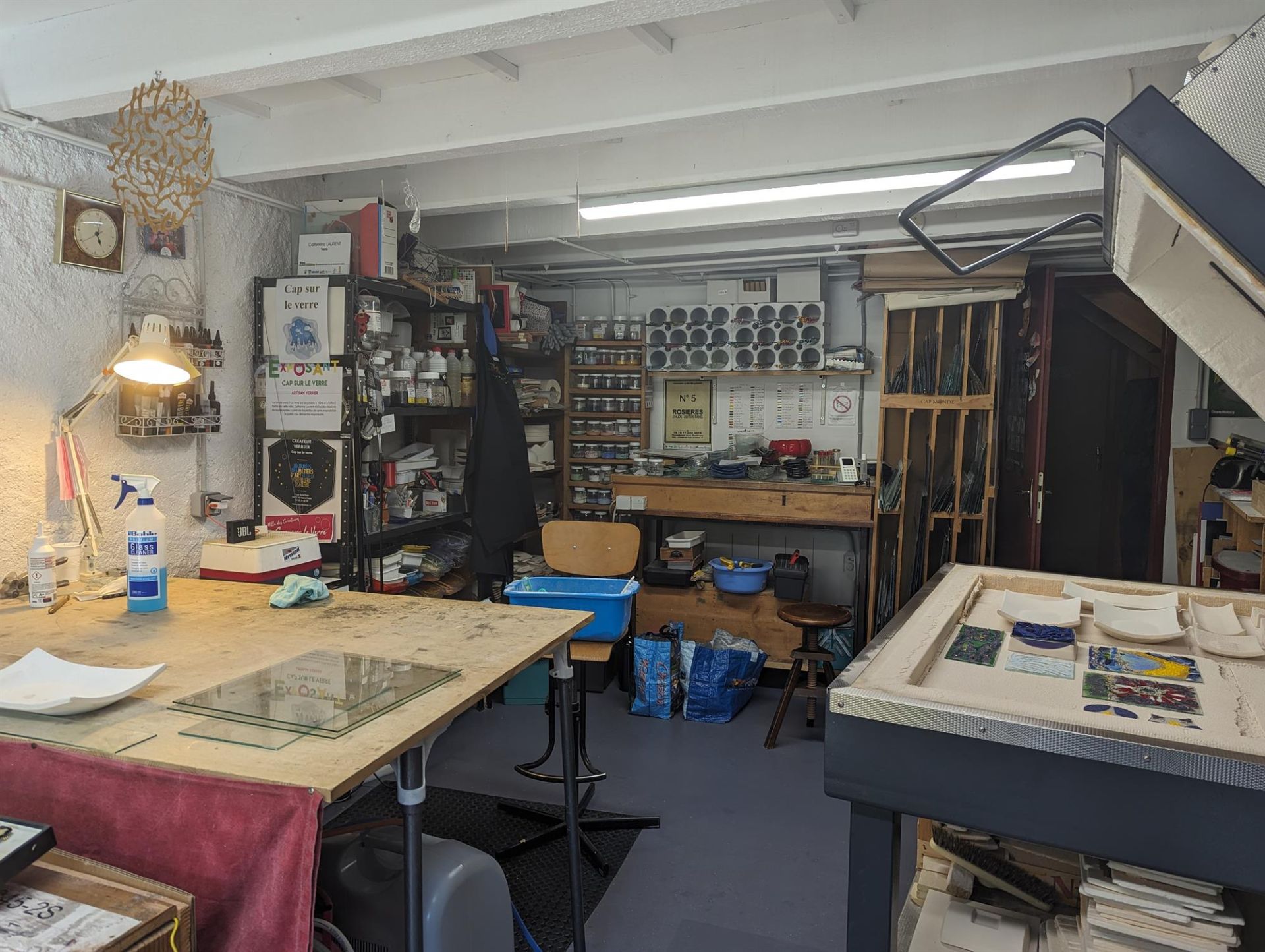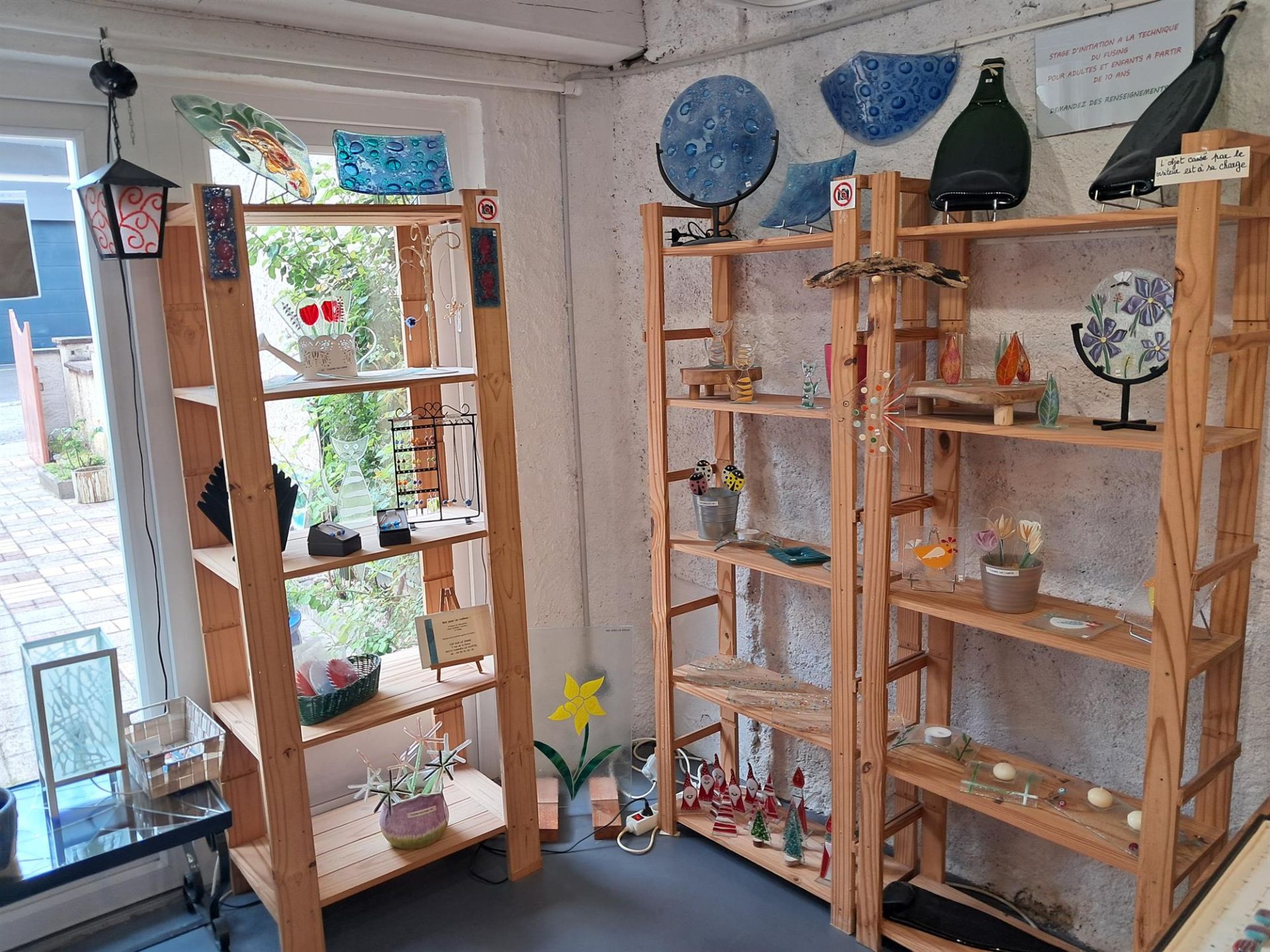 Artisanat verrier; Création d'objets décoratifs en verre, art de la table, bijoux, vitraux, fusing et thermoformage; chalumeau Ouvert sur rendez-vous.