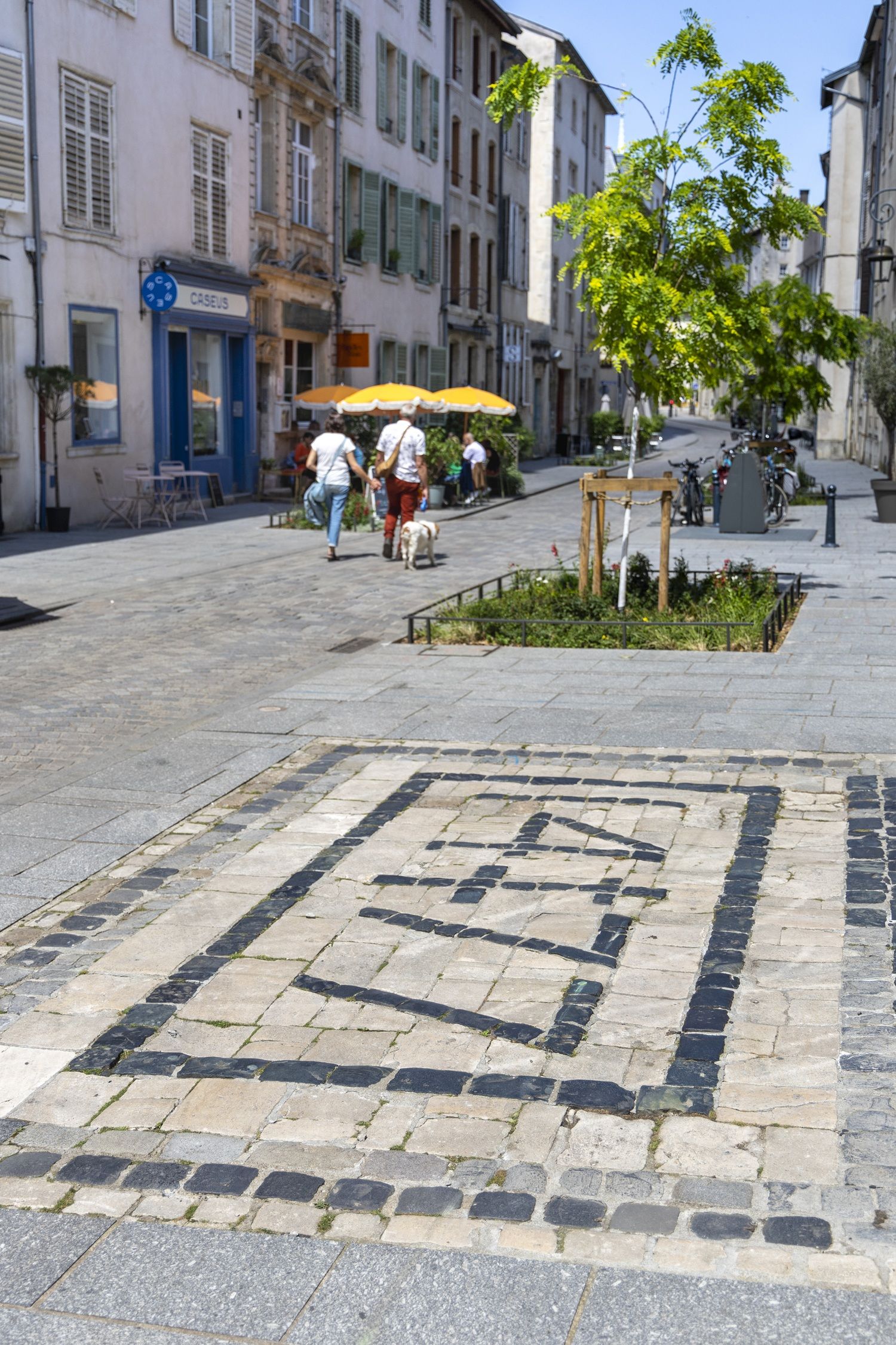 Un dallage daté "1477" rappelle la bataille de Nancy et marque l'emplacement de la maison dans laquelle avait été déposé le corps de Charles le Téméraire, duc de Bourgogne, tué devant Nancy le 5 janvier 1477. La croix de Lorraine, également visible, est devenu symbole de résistance depuis cet événement.