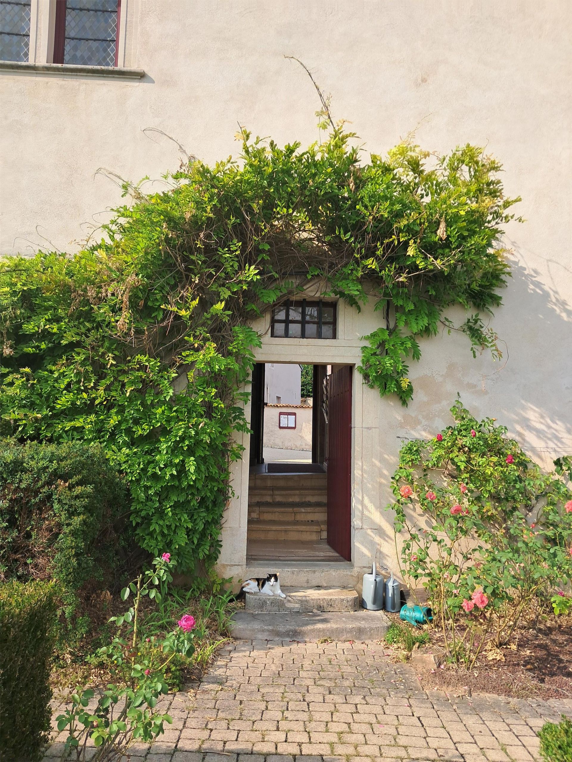 Un jardin de curé : datant d'après la Révolution et dont il subsiste encore de cette époque le caractère utilitaire du jardin avec ses légumes, vignes, fruits, plantes aromatiques