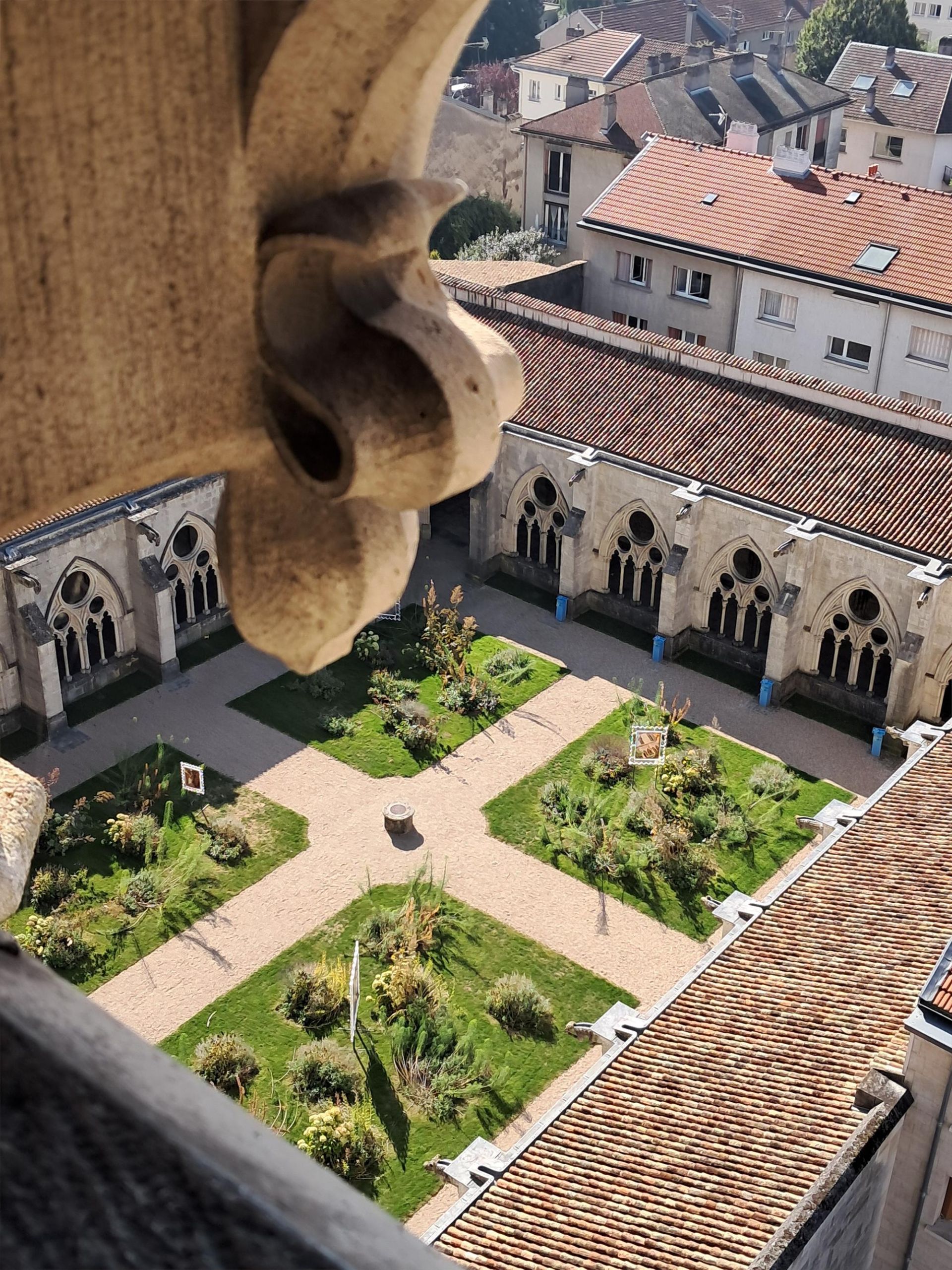 Après avoir gravi les 325 marches de la tour sud, un point de vue exceptionnel à 360° s'offre à vous. Là-haut, la ville se dévoile autrement : les venelles historiques, les remparts, les boucles de la Moselle et la campagne touloise composent un tableau unique.