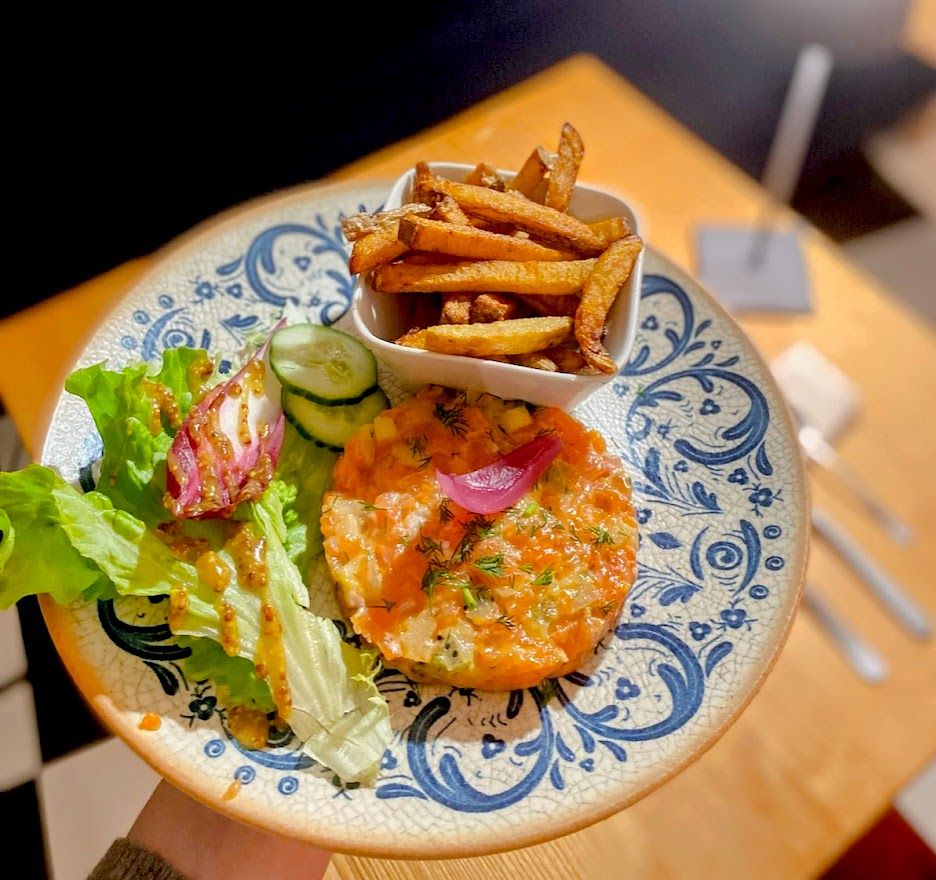 Au menu : une cuisine bistronomique, entièrement faite maison. Le restaurant a fait le choix d’une petite carte, renouvelée toutes les mois, et qui privilégie les produits bio et locaux. Et il y en a pour tous les goûts ! Pour les végétariens, des plats adaptés sont disponibles à la carte tout au long de l’année, et les jeunes gastronomes se délecteront avec un menu enfant gourmand et raffiné. Et pour la carte des vins, c’est du sur mesure, testé et approuvé par la patronne elle-même !