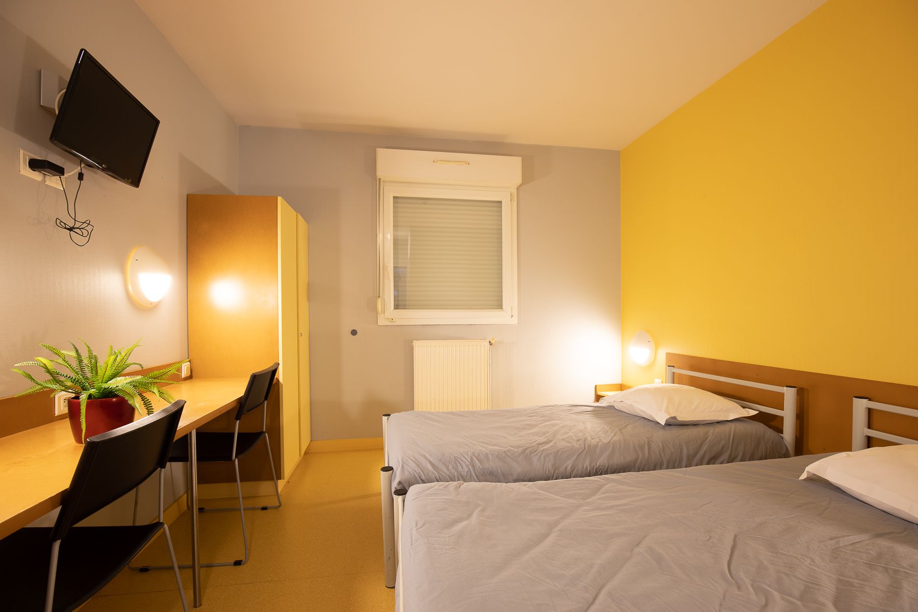 30 chambres doubles (dont 2 chambres PMR) équipées d'une télévision écran plat avec la TNT et d'une salle d'eau avec douche, lavabo et WC.