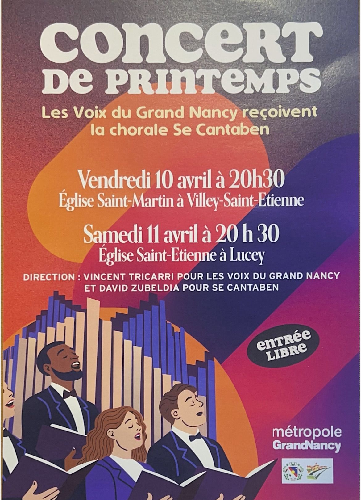 The Voices of Greater Nancy welcome the Se Cantaben choir for two concerts in the Toul region. Join them at the Saint-Martin church in Villey-Saint-Étienne to enjoy the choirs conducted by Vincent Tricarri and David Zubeldia.