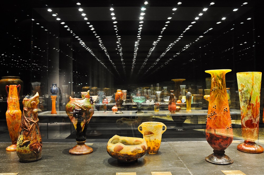 Unique, le musée de l’Ecole de Nancy est l’un des seuls au monde dédiés à ce courant artistique. Il propose une vaste collection de pièces caractéristiques du mouvement nancéien dans lesquelles l’influence naturaliste est omniprésente. Mobilier marqueté d’Eugène Vallin ou de Majorelle, objets d’art, verreries de Gallé, vitraux de Grüber… les plus grands artistes de la période sont représentés.