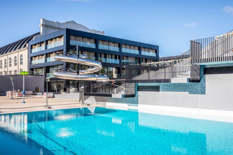 L’eau minérale naturelle rend cet espace unique en son genre. Bassins olympiques, intérieur et extérieur, pataugeoire, jeux d’eau, mur d'escalade, bassin de plongeons, pentagliss, toboggans… toutes les activités de l’espace Aquasport sont alimentées par de l’eau thermale.