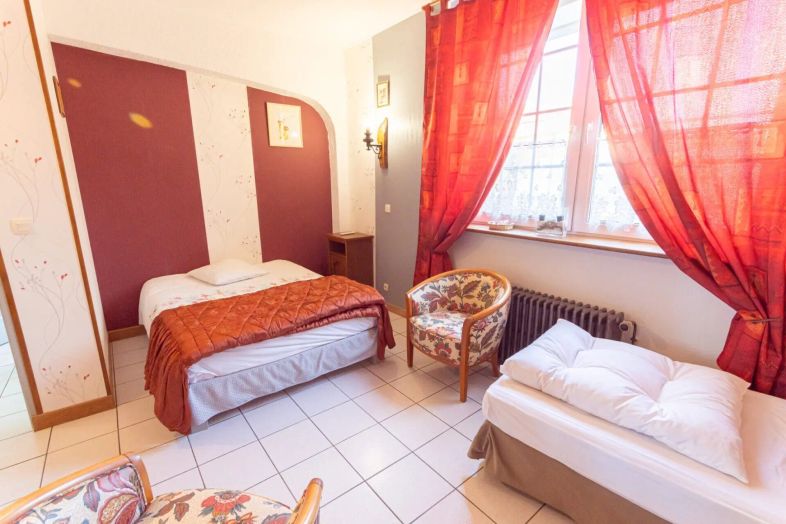 Les chambres se trouvent dans une maison, en face de notre auberge.
