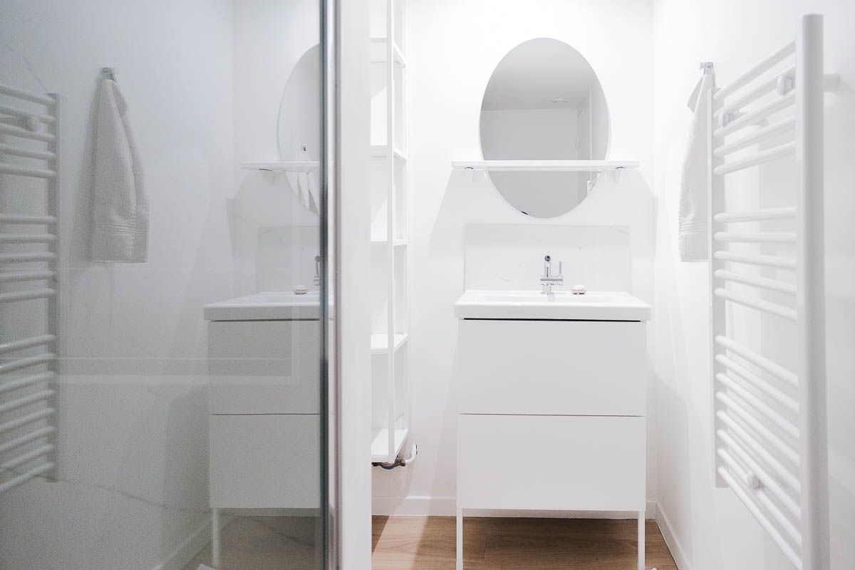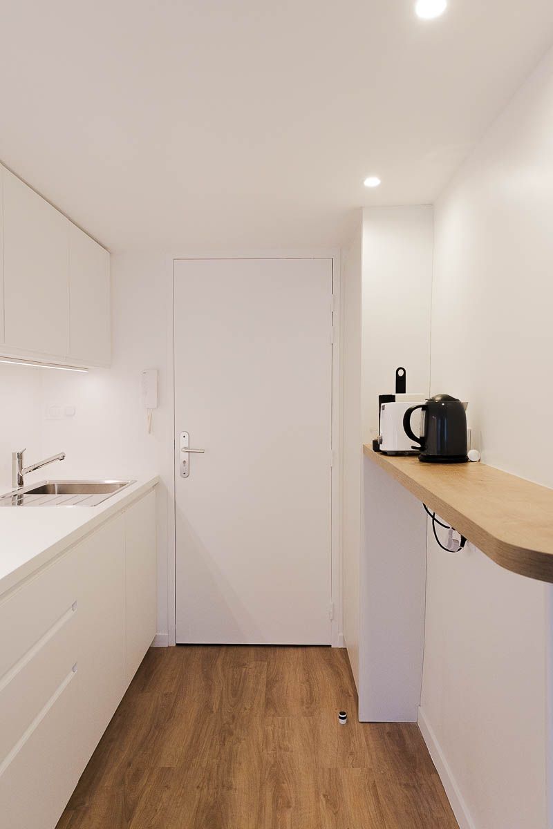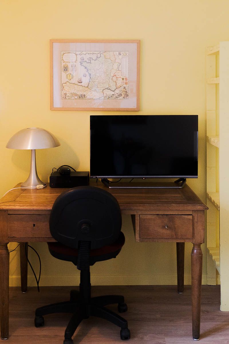 La Suite Saint Georges est entièrement équipée avec une cuisine complète, lave-linge, salle de bains avec douche, mais aussi un vrai salon et un vrai bureau pour y travailler ou télé-travailler.