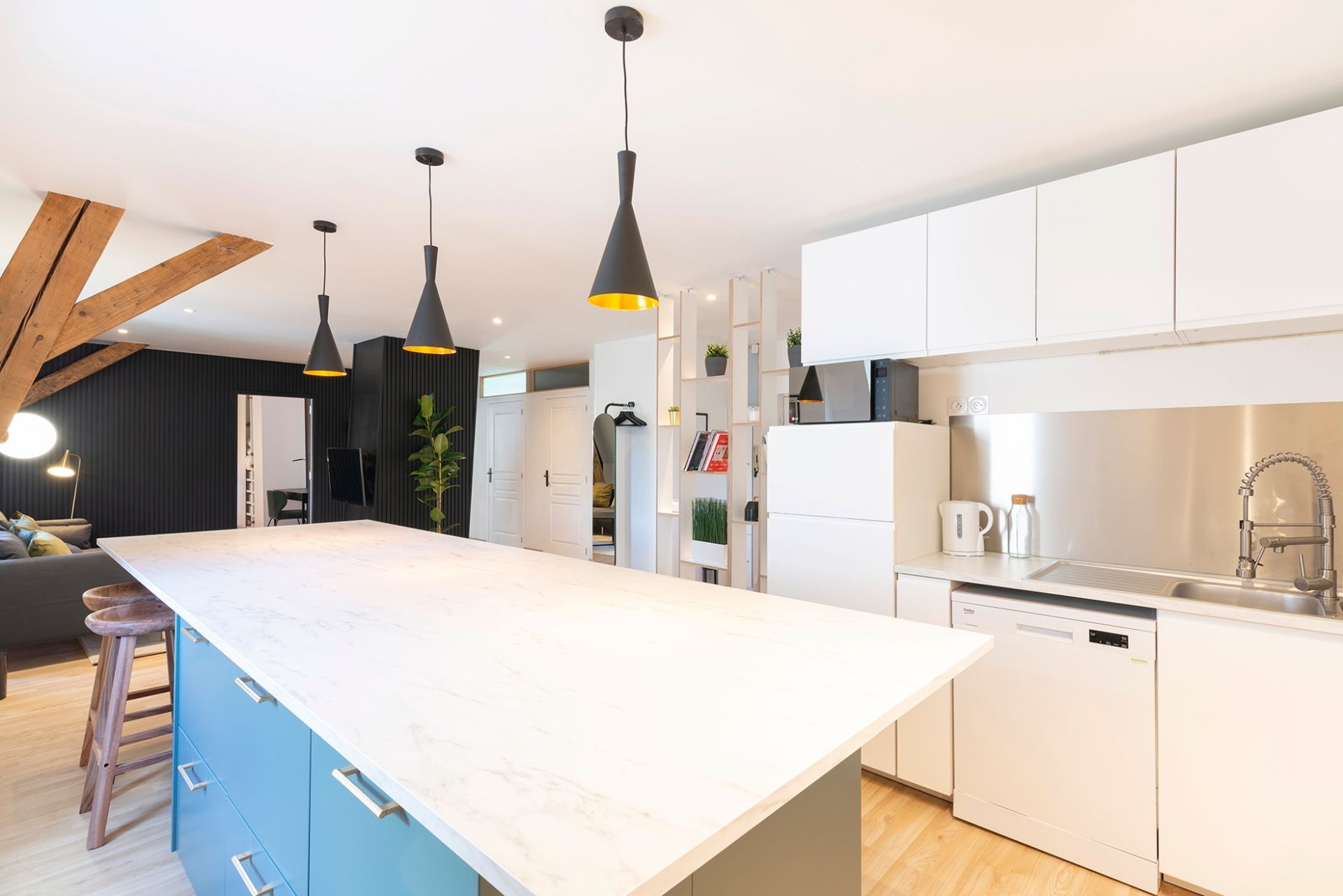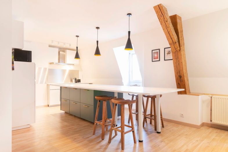 L'agence Cocoonr vous propose à la location, en plein coeur de Nancy, ce sublime loft d’une superficie de 80 m² et pouvant accueillir jusqu’à 4 voyageurs. Situé au troisième étage (sans ascenseur), il se compose d’une jolie pièce à vivre, d'une cuisine équipée, de deux belles chambres et d'une salle d'eau. Le ménage est inclus dans la location et du linge de qualité hôtelière 4* vous est fourni (draps, serviettes de toilette, torchons), votre lit sera préparé à votre arrivée.
