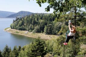 Vivez le grand frisson dans le cadre naturel exceptionnel du lac de Pierre Percée ! Le parc accrobranche propose des activités pour tous les niveaux et tous les âges, dès 3 ans.